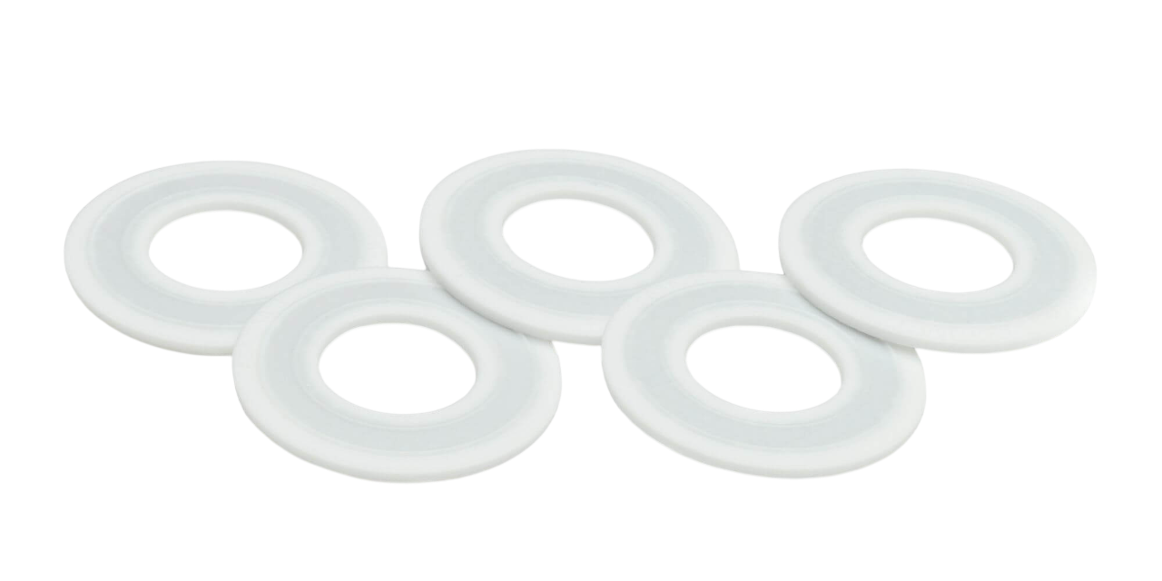 Metal gasket lined with PTFE for chemical resistance.